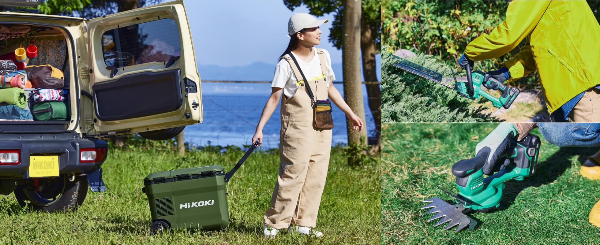 例えば、キャンプや野外フェス等のレジャーシーンで役立つ冷温庫やファン、空気入れといった製品。